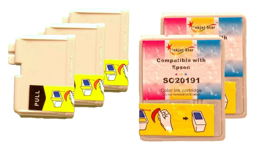 Our Compatible Epson S020189 black (3 pieces) and S20191 color (2 pieces) inkjet cartridges is designed to meet or exceed the specifications of the OEM (original equipment manufacturer) cartridge while offering consumers with cost savings of up to 80%. Our Epson S020189 black (3 pieces) and S20191 color (2 pieces) inkjet cartridges is produced with new components by our carefully sourced third-party suppliers. Inkjet Star backs up our products with 100% satisfaction guarantee.
