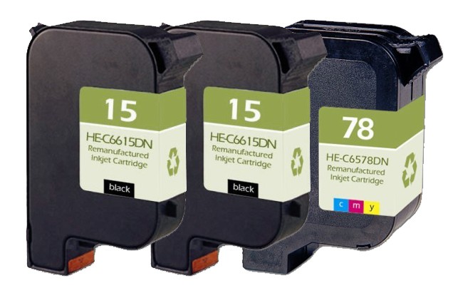 Our Remanufactured HP ink cartridges - C6615D (No. 15) black ink cartridge (2 pieces) and C6578D (No. 78) color ink cartridge (1 piece) is designed to meet or exceed the specifications of the OEM (original equipment manufacturer) cartridge while offering consumers with cost savings of up to 80%. Our HP ink cartridges - C6615D (No. 15) black ink cartridge (2 pieces) and C6578D (No. 78) color ink cartridge (1 piece) is produced with new components by our carefully sourced third-party suppliers. Inkjet Star backs up our products with 100% satisfaction guarantee.